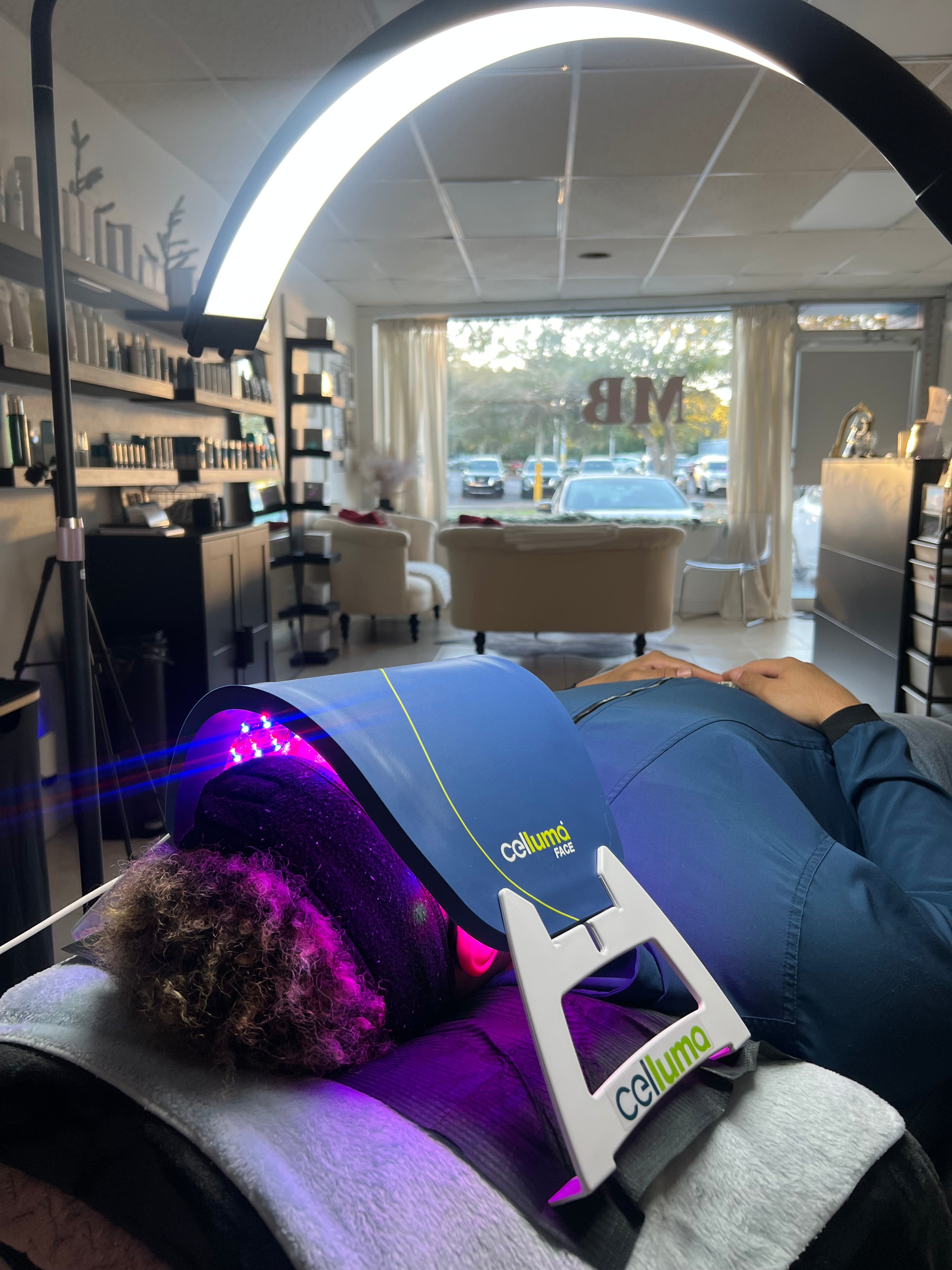 Can include a triple cleanse, custom exfoliation (dermaplaning, light chemical peels, enzyme, spicule liquid needling) extractions, mask, custom serums & light therapy.